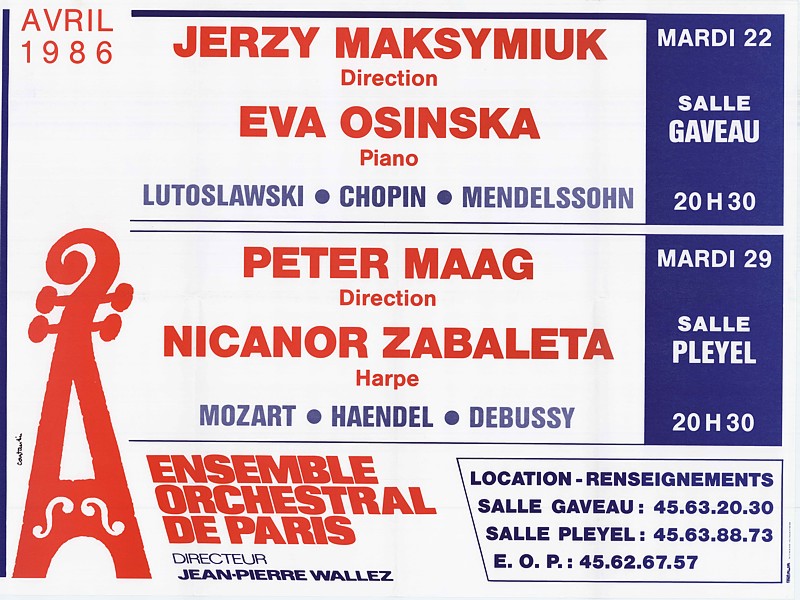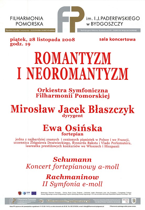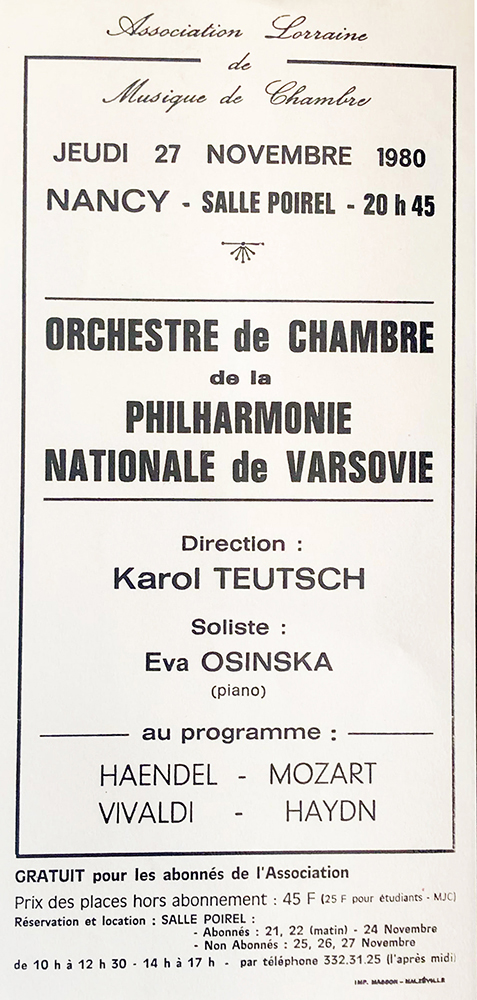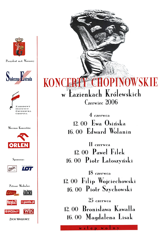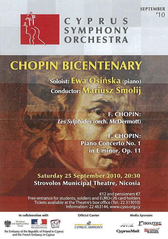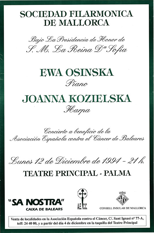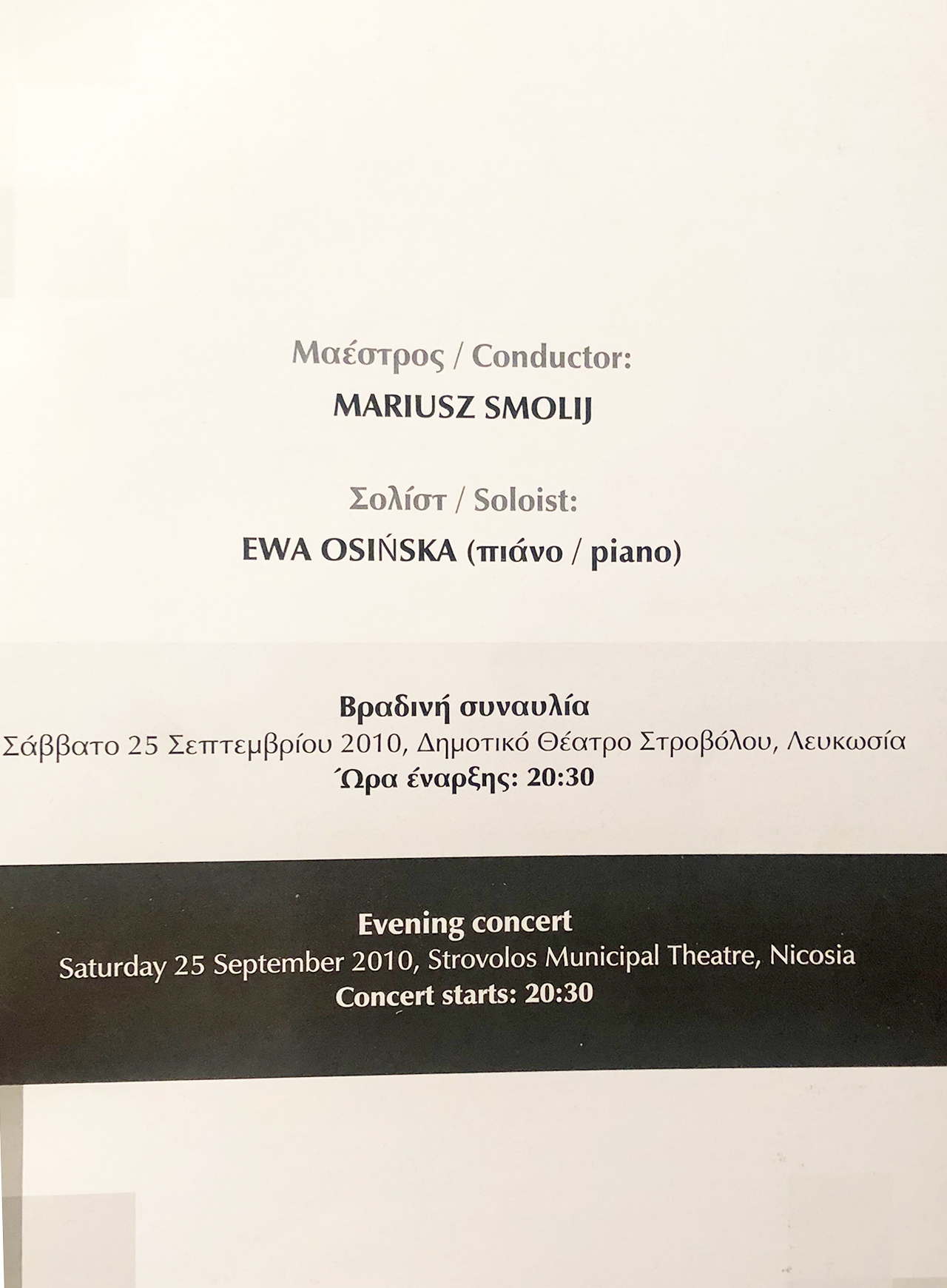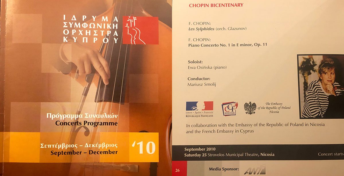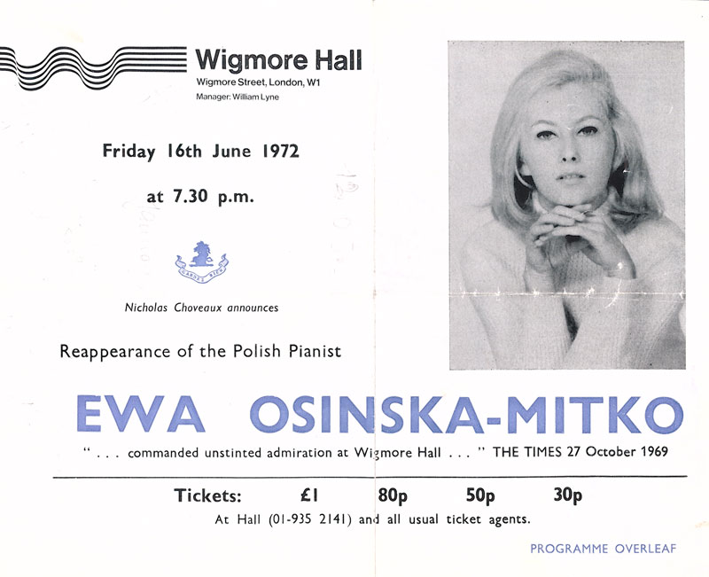 Afisze Ewa OsińskaWigmore Hall, 1969Wigmore Hall, 1977Filharmonia Narodowa, 1977Salle PleyelSalle Pleyel, 1979Theatre des Champs-Elysees, 1977Salle Pleyel, 1978Queen Elizabeth Hall, 1979Festival International Eternach, 1979Salle Pleyel, 1980Salle Poyrel, 1980Theatre des Champs-ElyseesKongreBhalle, 19811982Bunka Kaikan, 19841984Salle Gaveau, 19861986Salle de l'EmulationPaństwowa Filharmonia, 1989Salle Pleyel, 1989BBC Concert Orchestra, 1989Chatelet, 1991Salle Gaveau, 1992Majorka, 1993Moscow, 20042005Łazienki Królewskie, 2006Żelazowa Wola, 20062006Żelazowa Wola, 2008Filharmonia Pomorska, 2008Moscow, 2008Łazienki Królewskie, 2009Cyprus Symphony Orchestra, 2010Cyprus Symphony Orchestra, 2010Sala Teatru Posk, 2010Strovolos Municipal Theatre, 20102011Polska Filharmonia Pomorska, 2014Orkiestra Symfoniczna UMFC, 2014Ewa OsińskaChuansha International Piano Festival, 2016Piano Concert, 2018 do góry